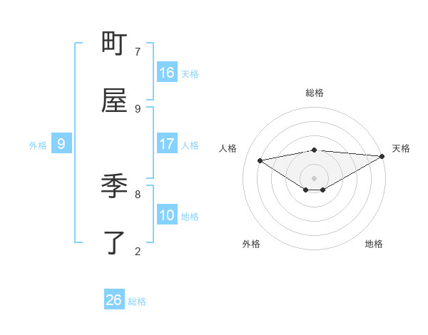 町屋 季了さんの天格は16画の5点!