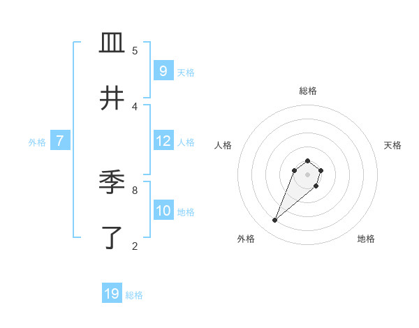 皿井 季了さんの総格は19画の1点!