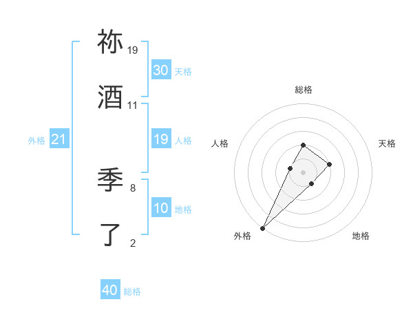 祢酒 季了さんを姓名の画数から五運を鑑定