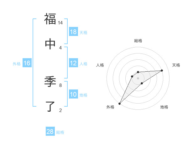 福中 季了さんを姓名の画数から五運を鑑定