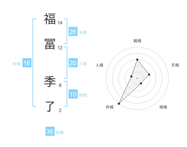 福冨 季了さんの外格は16画の5点!