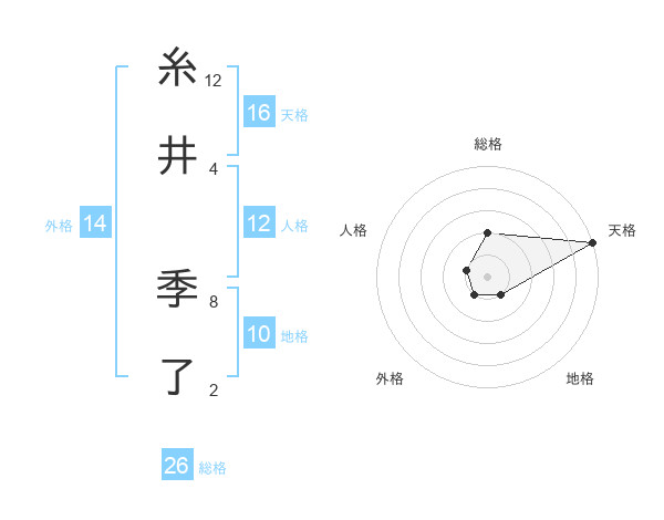 糸井 季了さんの総格は26画の2点!