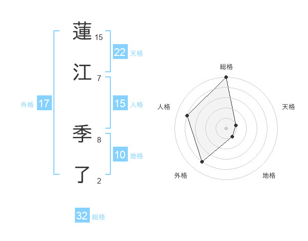 蓮江 季了さんを姓名の画数から五運を鑑定