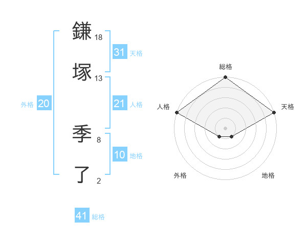 鎌塚 季了さんを姓名の画数から五運を鑑定