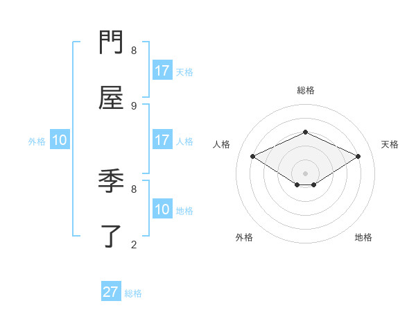 家系が持つ宿命的な運勢を表します。祖先から受け継いだ苗字ですので自分の力が及びません。家柄を象徴します。