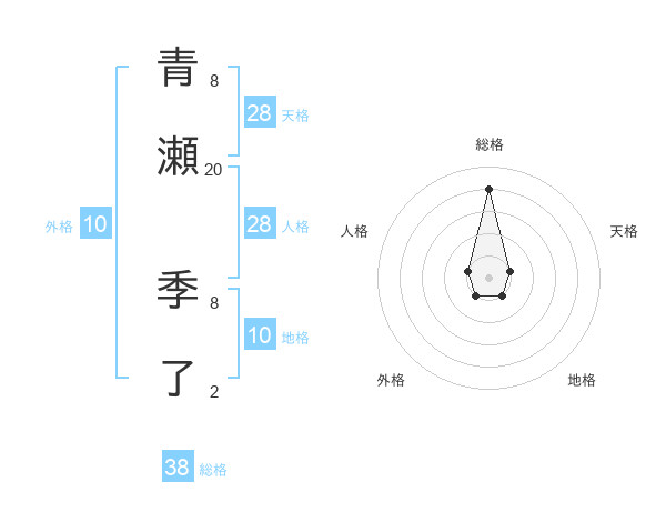青瀬 季了さんの総格は38画の4点!