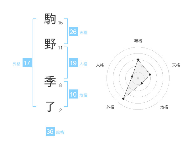 家系が持つ宿命的な運勢を表します。祖先から受け継いだ苗字ですので自分の力が及びません。家柄を象徴します。