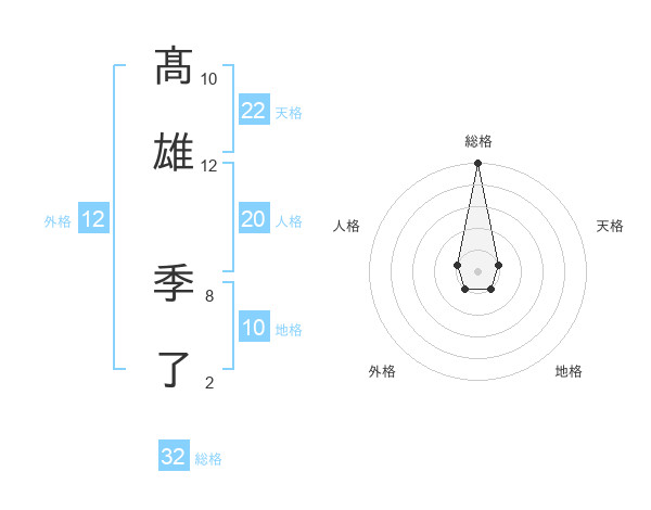 髙雄 季了さんの総格は32画の5点!