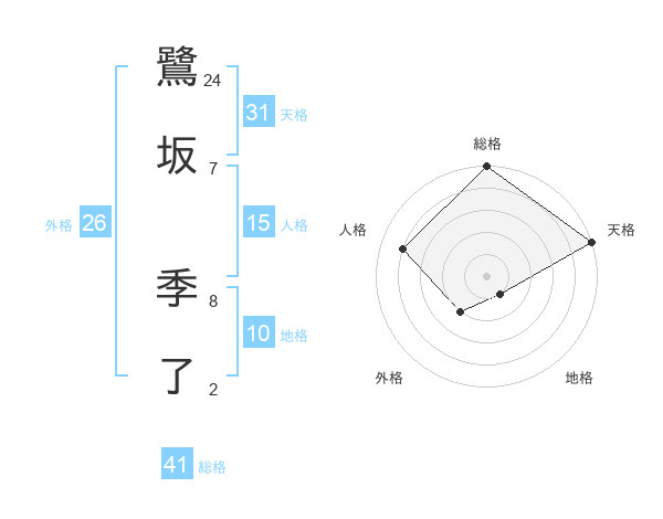 鷺坂 季了さんを姓名の画数から五運を鑑定