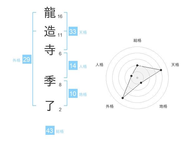 龍造寺 季了さんの総格は43画の2点!