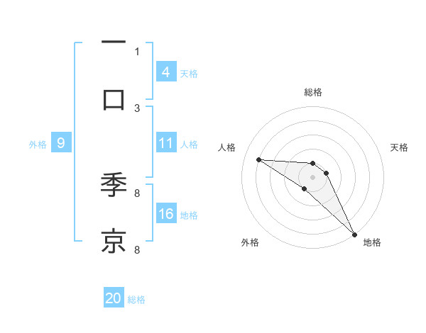 家系が持つ宿命的な運勢を表します。祖先から受け継いだ苗字ですので自分の力が及びません。家柄を象徴します。