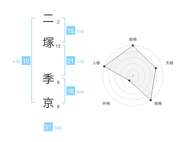 二塚 季京さんの天格は15画の4点!