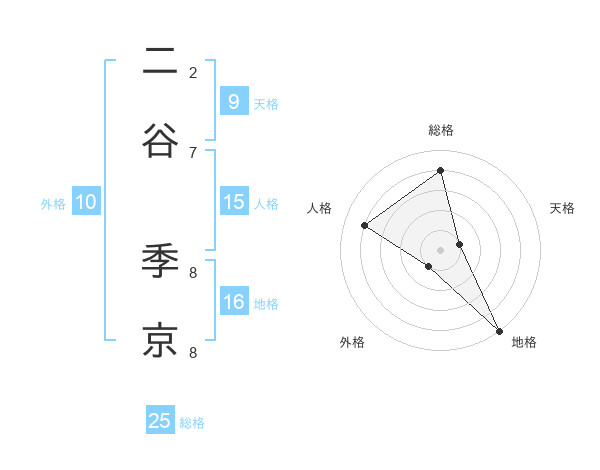 家系が持つ宿命的な運勢を表します。祖先から受け継いだ苗字ですので自分の力が及びません。家柄を象徴します。