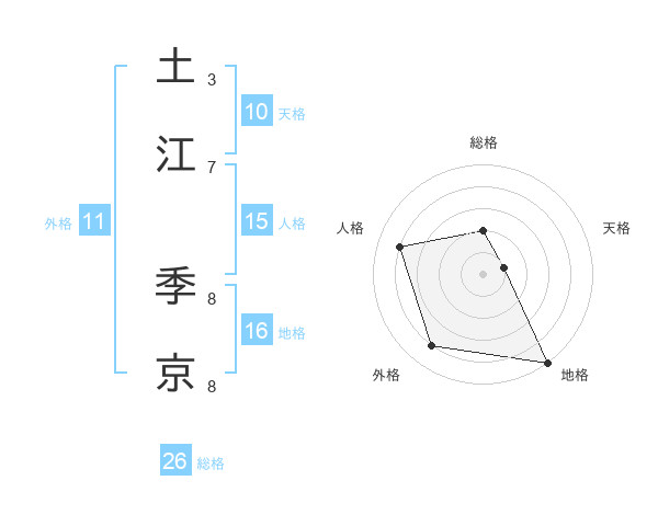 土江 季京さんの総格は26画の2点!