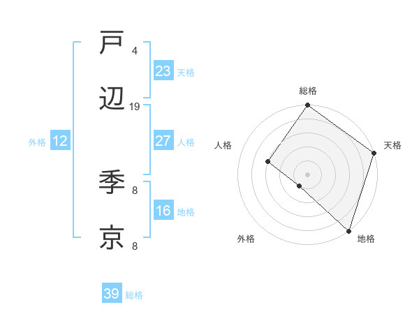戸辺 季京さんの総格は39画の5点!