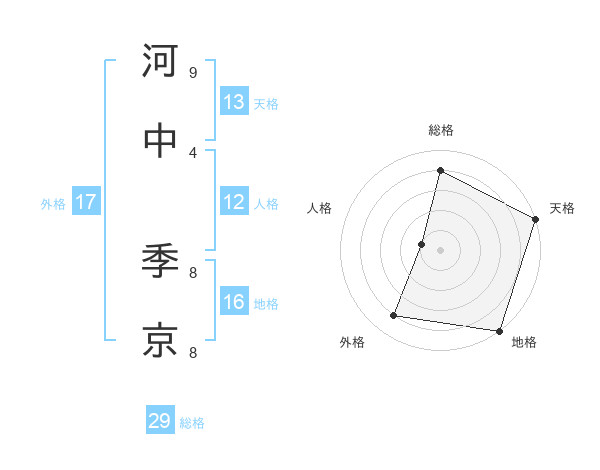 河中 季京さんの総格は29画の4点!