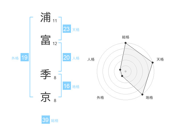 家系が持つ宿命的な運勢を表します。祖先から受け継いだ苗字ですので自分の力が及びません。家柄を象徴します。