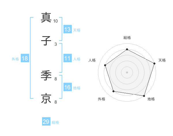 真子 季京さんの総格は29画の4点!