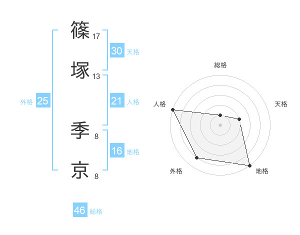 篠塚 季京さんの人格は21画の5点!