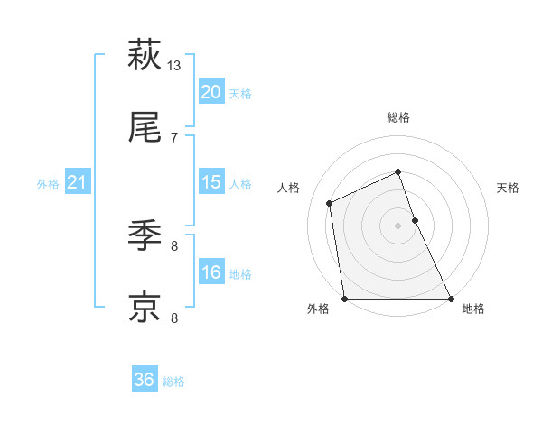 萩尾 季京さんの天格は20画の1点!