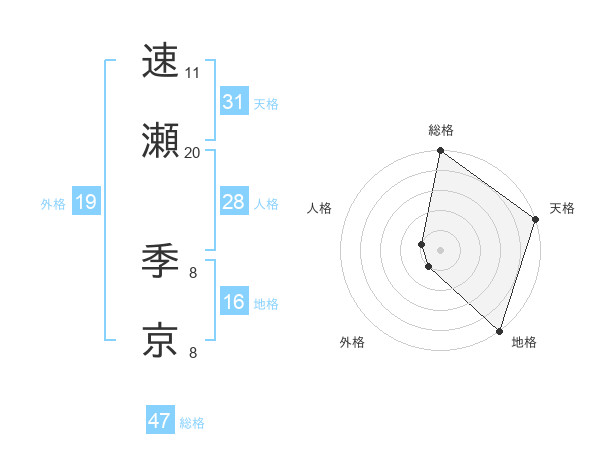 速瀬 季京さんを姓名の画数から五運を鑑定