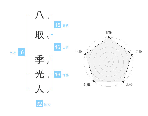 八取 季光人さんの外格は16画の5点