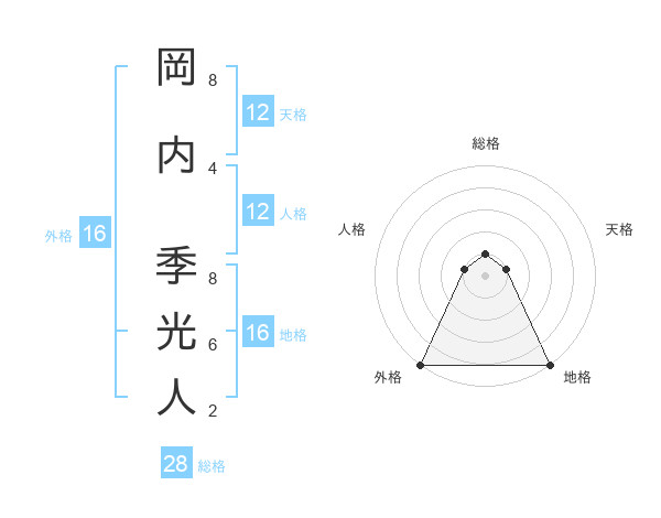 岡内 季光人さんの外格は16画の5点!