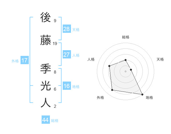 後藤 季光人さんを姓名の画数から五運を鑑定
