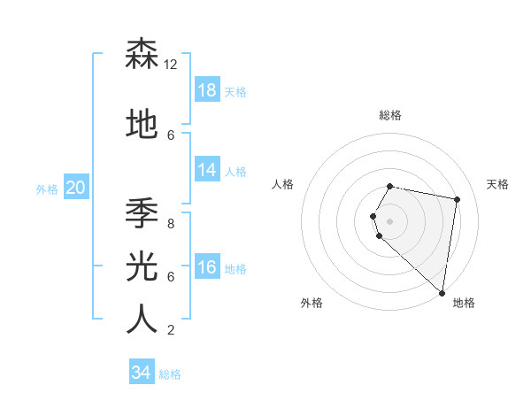 森地 季光人さんの総格は34画の2点!