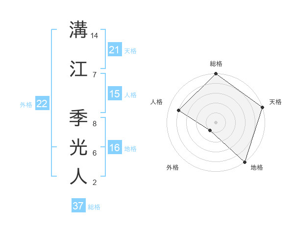溝江 季光人さんの天格は21画の5点!