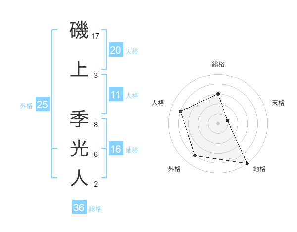 磯上 季光人さんを姓名の画数から五運を鑑定