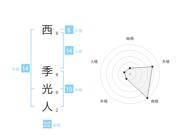 本サイトの鑑定結果の正当性は保証しません。鑑定結果は参考程度にお読みください。実際の名づけにご利用される場合は、姓名判断についてご自身でよくお調べください。