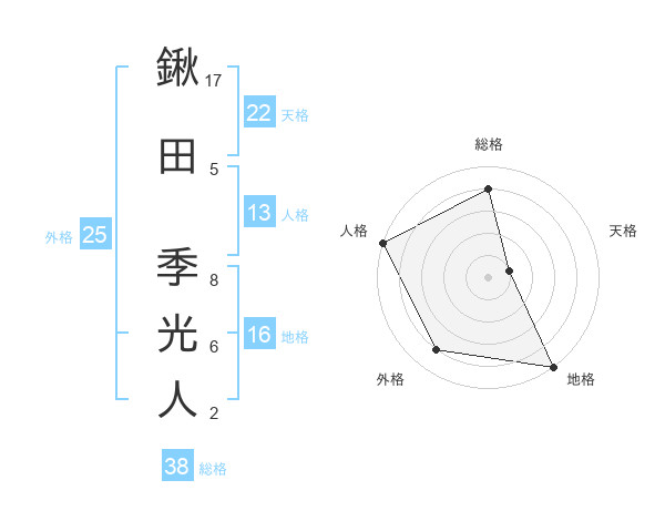 鍬田 季光人さんの総格は38画の4点!