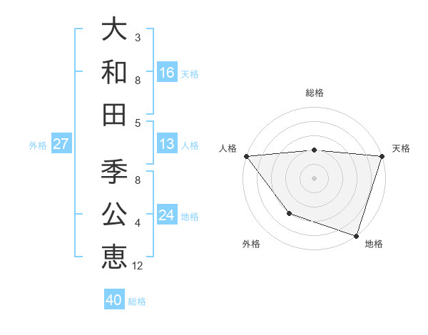 大和田 季公恵さんの総格は40画の2点!
