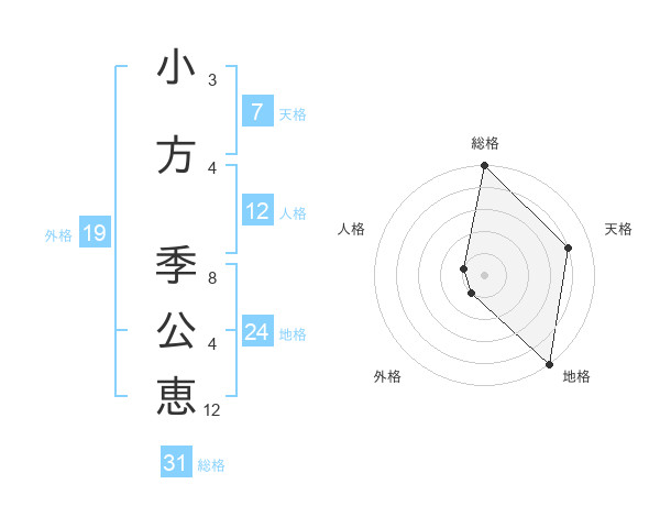小方 季公恵さんを姓名の画数から五運を鑑定