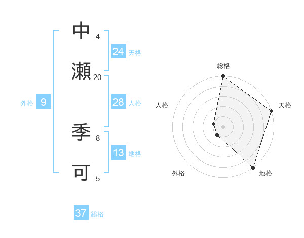 中瀬 季可さんの総格は37画の5点!