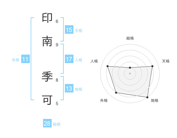 印南 季可さんの地格は13画の5点!