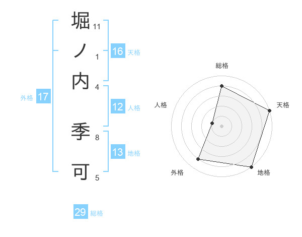堀ノ内 季可さんを姓名の画数から五運を鑑定