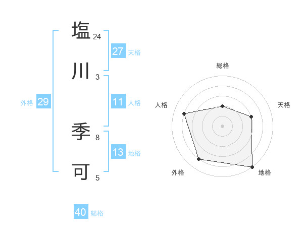 塩川 季可さんの総格は40画の2点!