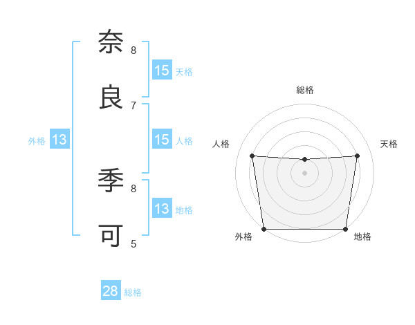 奈良 季可さんの総格は28画の1点!