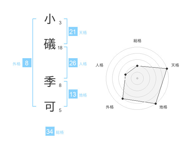 小礒 季可さんの天格は21画の5点!