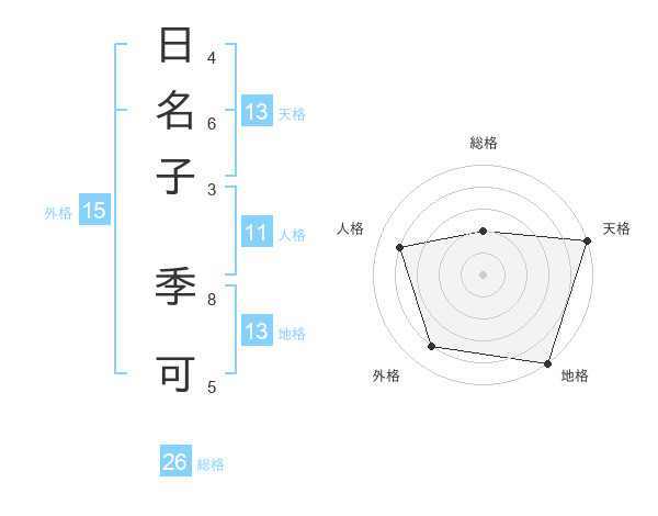 日名子 季可さんの天格は13画の5点!
