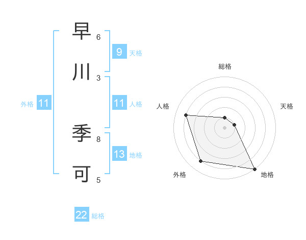 早川 季可さんの地格は13画の5点!