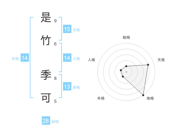 是竹 季可さんの総格は28画の1点!