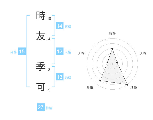 時友 季可さんの外格は15画の4点!