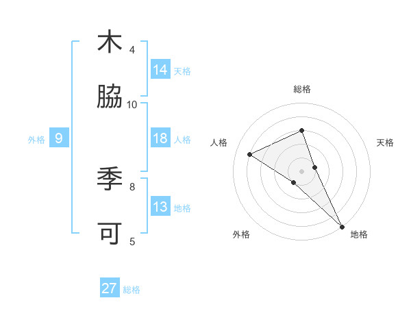 木脇 季可さんの総格は27画の3点!