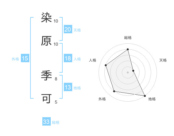 染原 季可さんの総格は33画の4点!