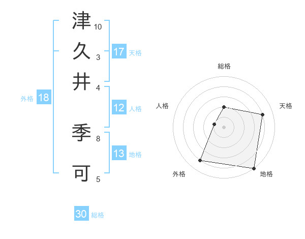 津久井 季可さんの総格は30画の2点!