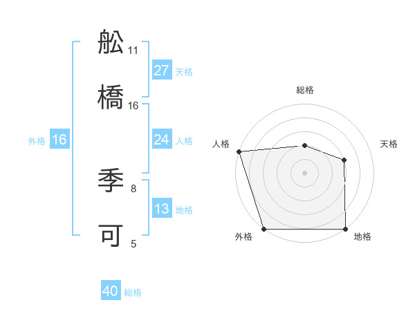 舩橋 季可さんの総格は40画の2点!