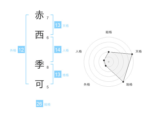 家系が持つ宿命的な運勢を表します。祖先から受け継いだ苗字ですので自分の力が及びません。家柄を象徴します。